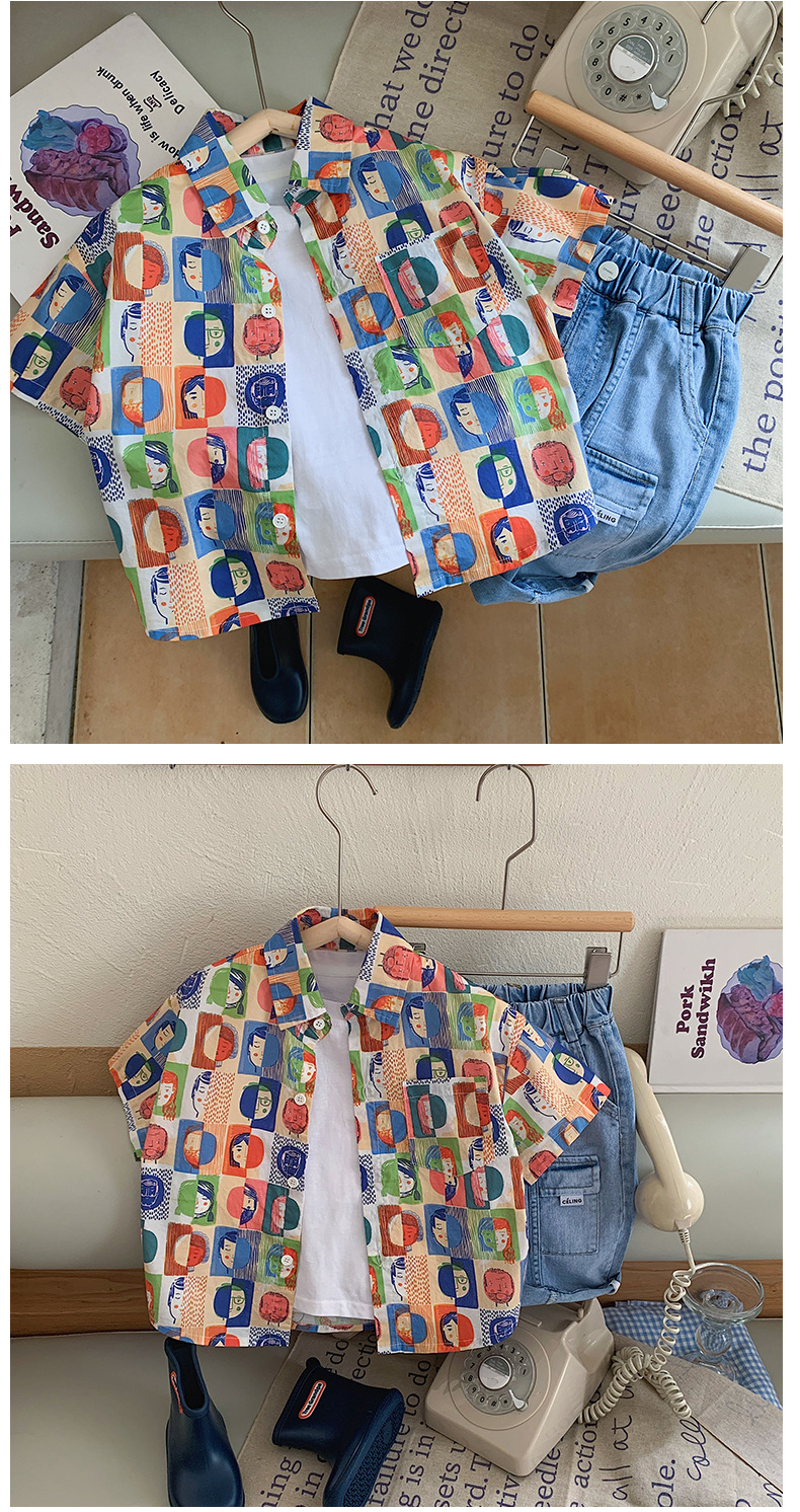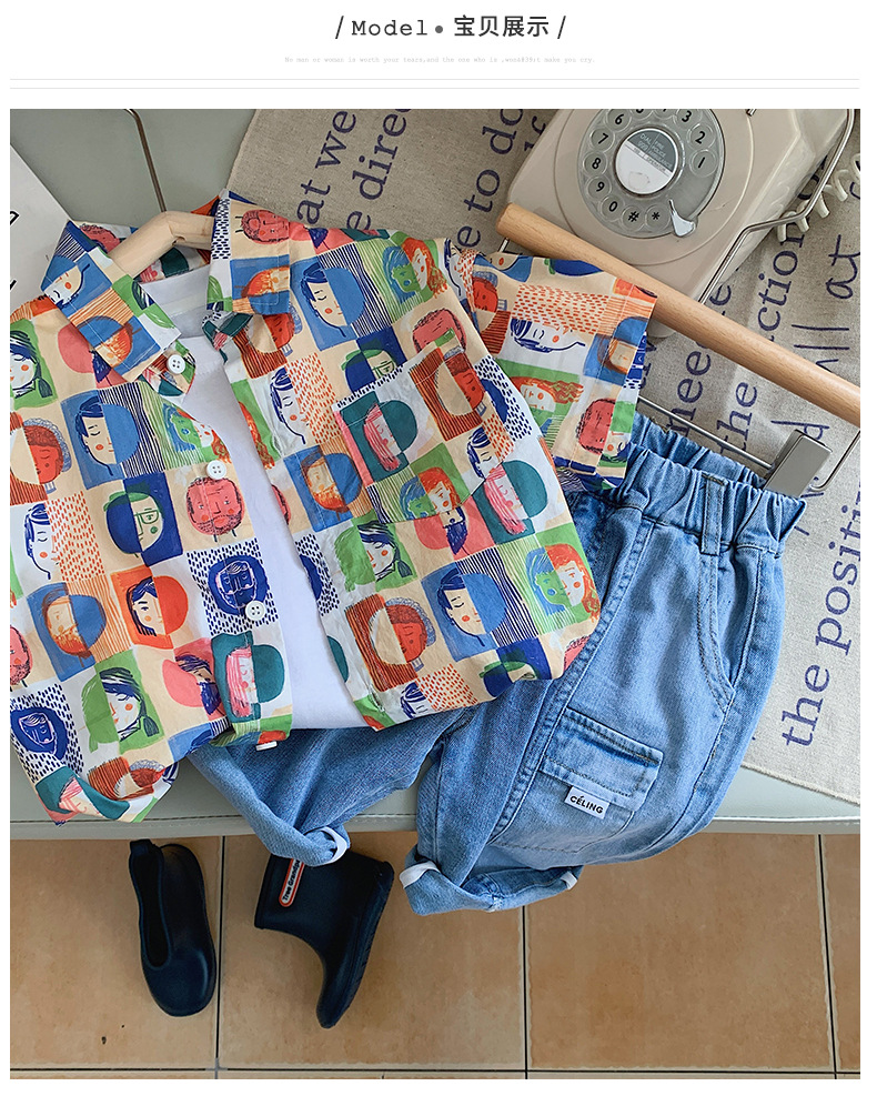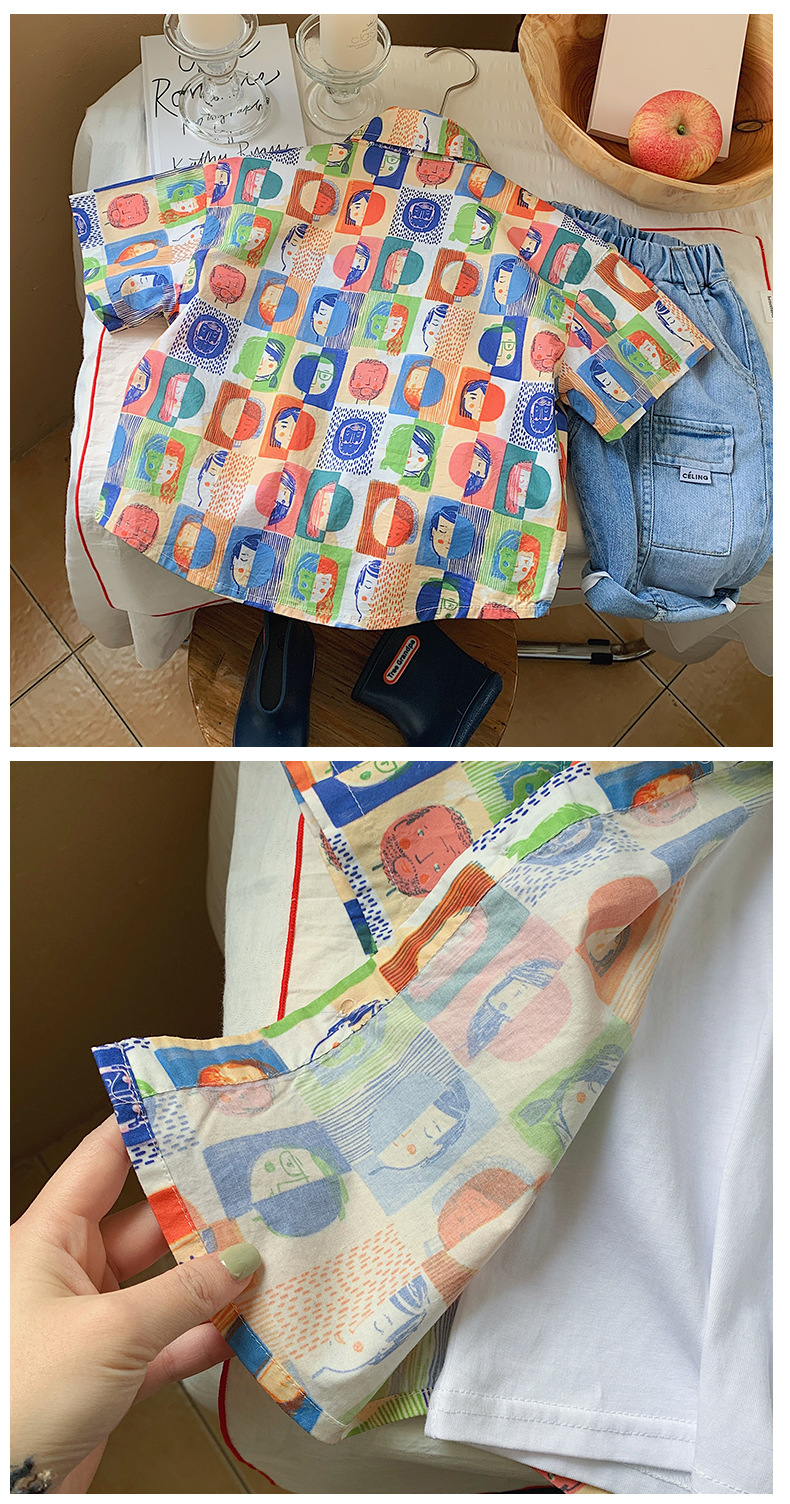 Summer Children's Short-Sleeved Shirts For Boys Children's Heads Full Of Printed Shirts Korean Boys Baby Clothes In Stock